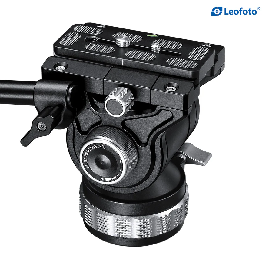 This BV-15 Fluid Tripod Head from Leofoto provides an ergonomic and smooth balancing interface for your camera support setup. The 70mm flat base carries an Arca style quick release plate and is precisely configured with two integrated bubble levels to allow you to properly meet horizons lines. 3/8″-16 and 1/4″-20 threads accept most any camera accessory and the included handle can be mounted on either side of the head to ensure comfort for any operator.