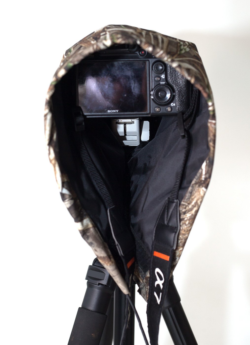 Velcro opening on Bottom to take out Tripod collar. All rain covers comes with a attractive pouch. This Size works well with Sony 200-600 with Body attached.