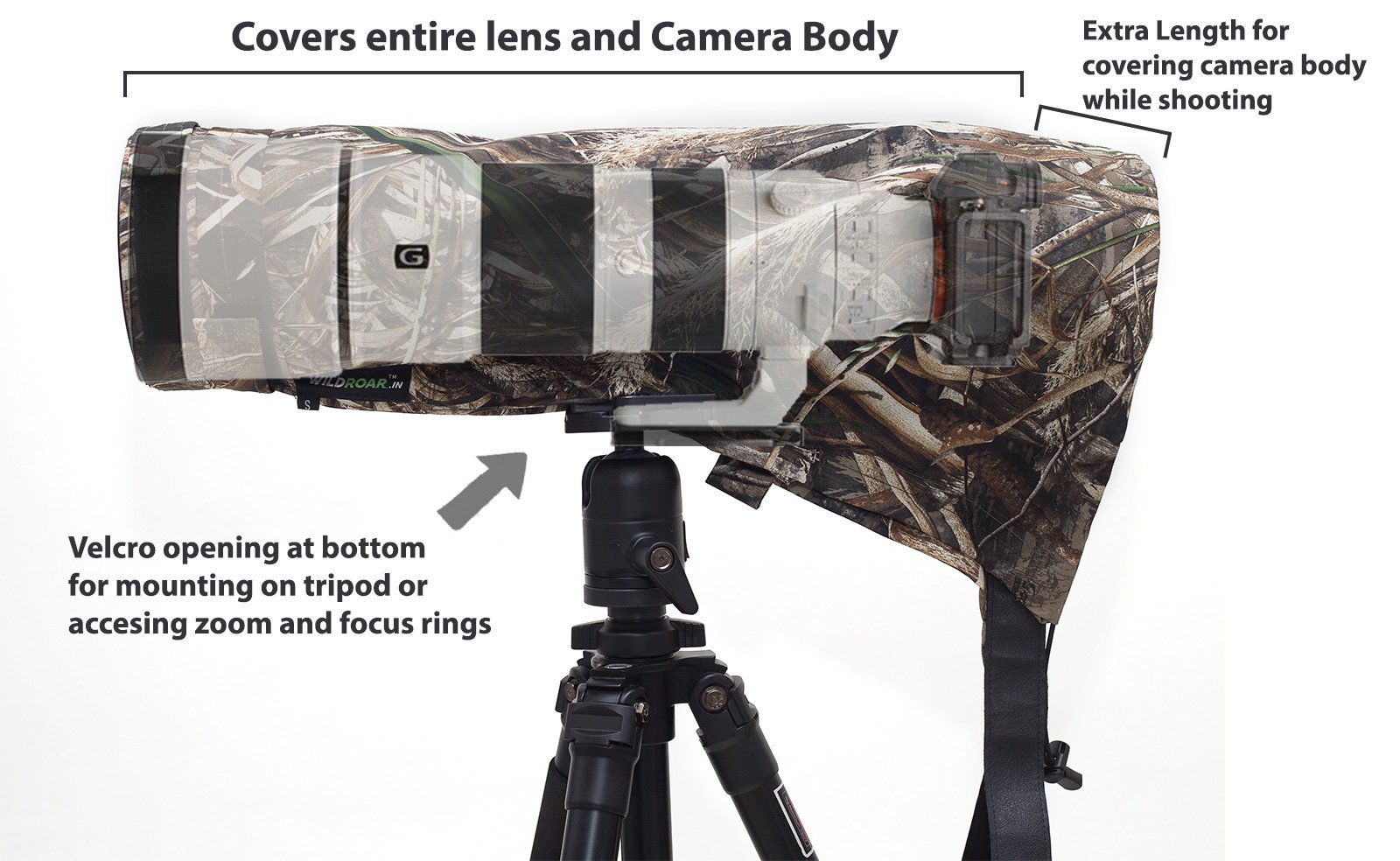 We have developed this Rain & Dust Cover specially for Sony 200-600 lens with body. It has 2 velcro straps in front for perfect grip of Rain cover on lens Hood. It has been designed in a slim fit alongwith lens shape for easy handling. We will provide one additionla strap Free for making rain cover compact. It’s an optional belt, you can skip using it if you want.