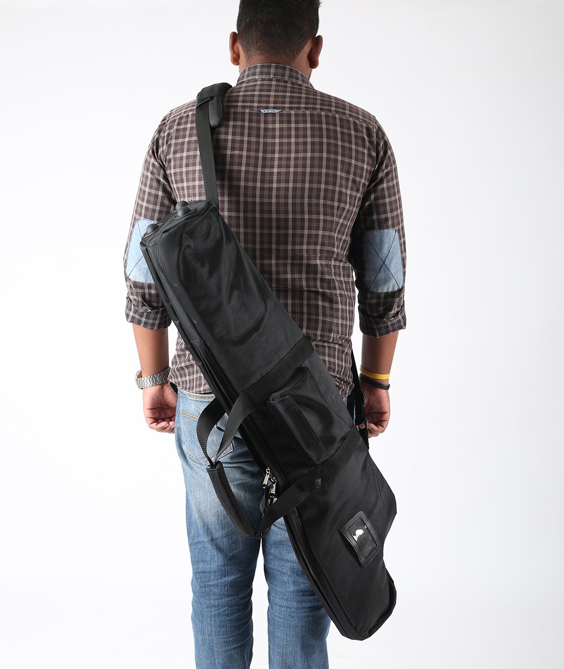 This is an unique product. We have designed this out of need. As there are almost no affordable bags available to carry Gimbal Head attached to legs. It’s a Padded bag. Strong lockable YKK Zippers (Word’s Best). There is padding provided on shoulder strap as well as on Handles. In exterior pocket you can keep Allen keys and other tools. There’s a Name card holder which can be very important in case of misplacing your bag. There are protective elements on bottom of the bag. Large size bag can hold tripod with gimbal head measuring upto 34 inch (length) If you have bigger tripod, then you can check out Xl size bag on our website.