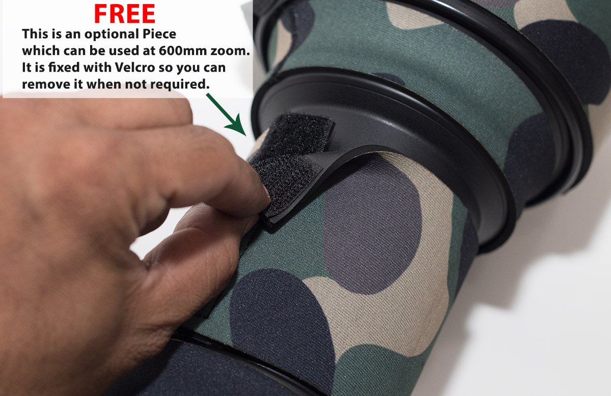 Protect your lens from scratches and bumps with much awaited Neoprene coats from WildRoar. Specially made for Sigma 60-600mm f/4.5-6.3 DG OS HSM Sports Available in 2 prints. Green Forest & Dry Forest. Available at very attractive Limited period price. We provide Instructions Manual which has step by step instructions, so it becomes easy to install coat. We will also provide a piece to cover zoom barrel at 600mm. this piece is velcro based so it can be removed when not required.